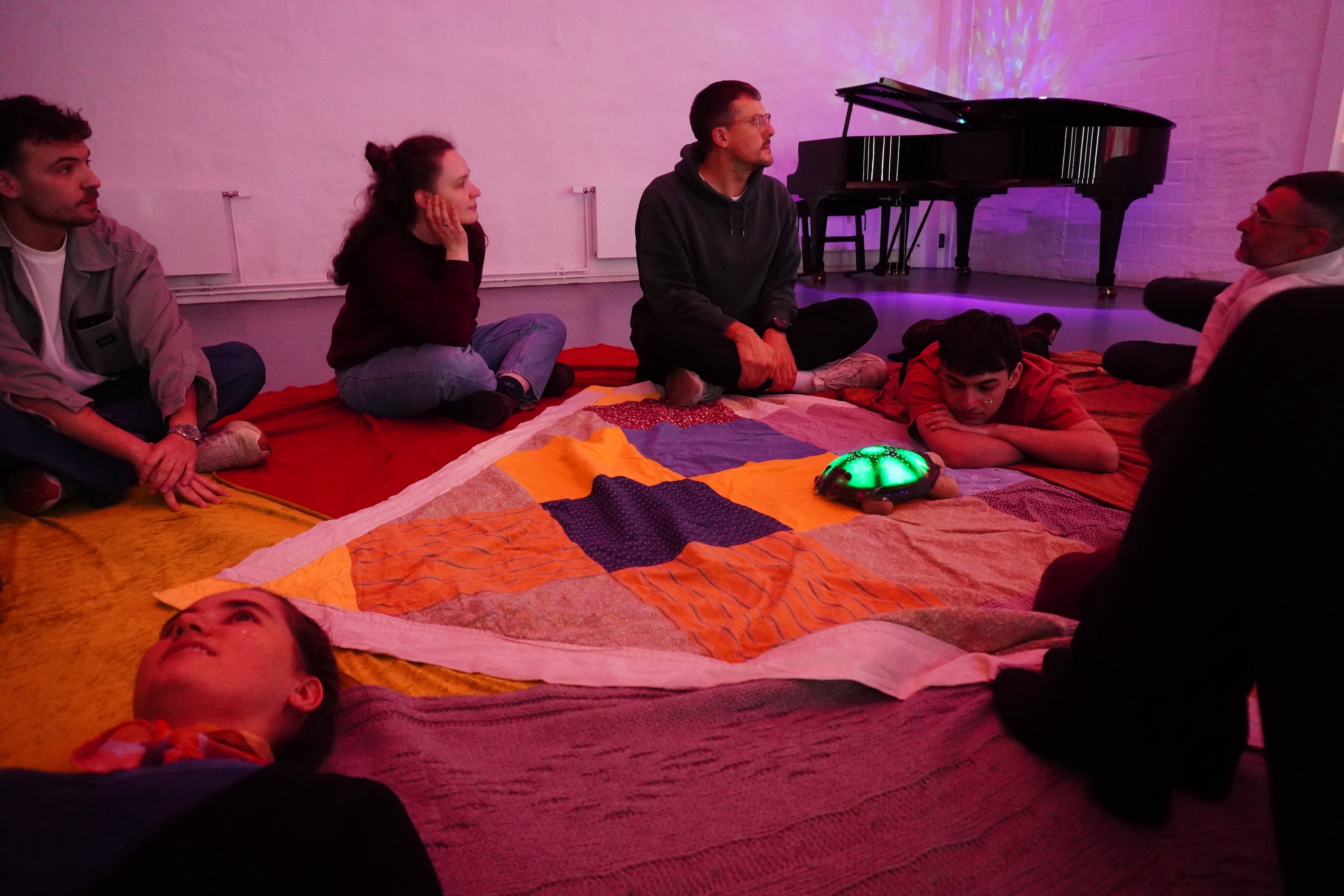 Mit den TONALi-Akademist*nnen, Musiker*nnen und wie heute mit dem Team des TONALi-Kosmos öffnen wir für etwa 20 Minuten einen Resonanzraum für Zukunftsbilder, das Träumen und den Mut zum Andersmachen.