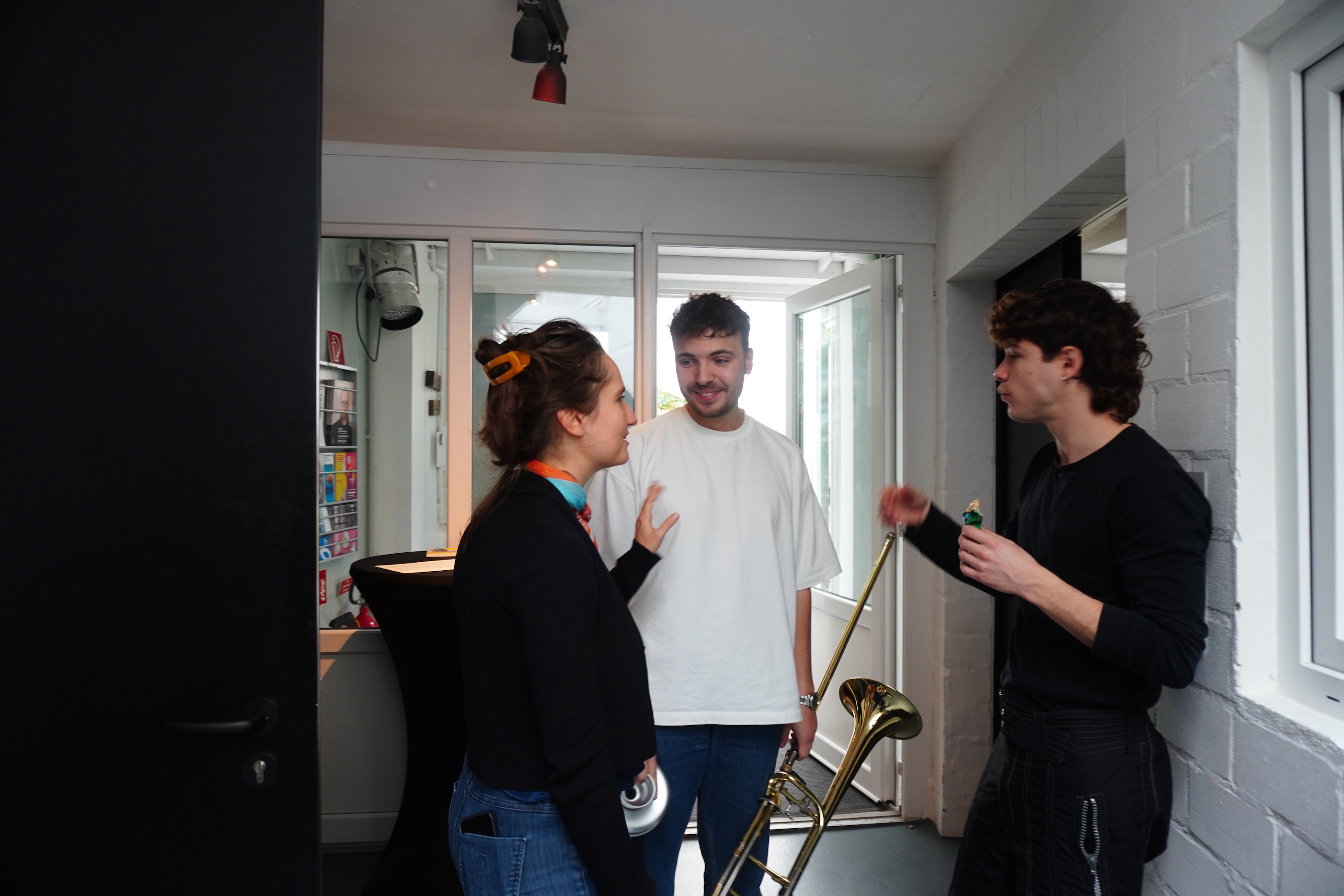 Christian: Eben der Mut zur Utopie, wie auch dieser Preis, und diese Zusammenarbeit von uns heißt. Du arbeitest mit Jugendlichen aus sechs verschiedenen Schulen. Also die Schulen, die bei TONALi den Kunstschutzgebieten zugeordnet sind. Das beginnt ja jedes Jahr wieder aufs Neue. Was mich ganz besonders interessiert, in unserer Zusammenarbeit ist: wir hatten einen ersten Workshop im Oktober 2025, wo zum ersten Mal die Jugendlichen mit den Akademist*innen zusammentrafen. Wie beginnt so eine Zusammenarbeit? Es ist ja genau das, was niedergerissen werden soll - also diese Dichotomie, von der du gesprochen hast, und dieses Mühen oder diese Energie auf beiden Seiten. Wie hast du das da empfunden und wie können diese Brücken geschaffen werden, um das Publikum, aber auch die Künstler*innen, von morgen oder vom 3. Juli 2026 einander näherzubringen?