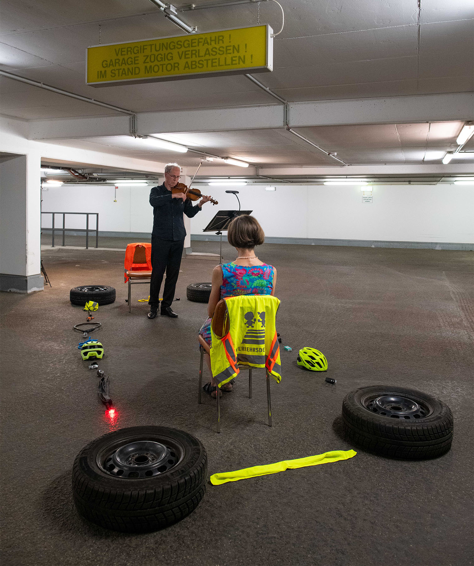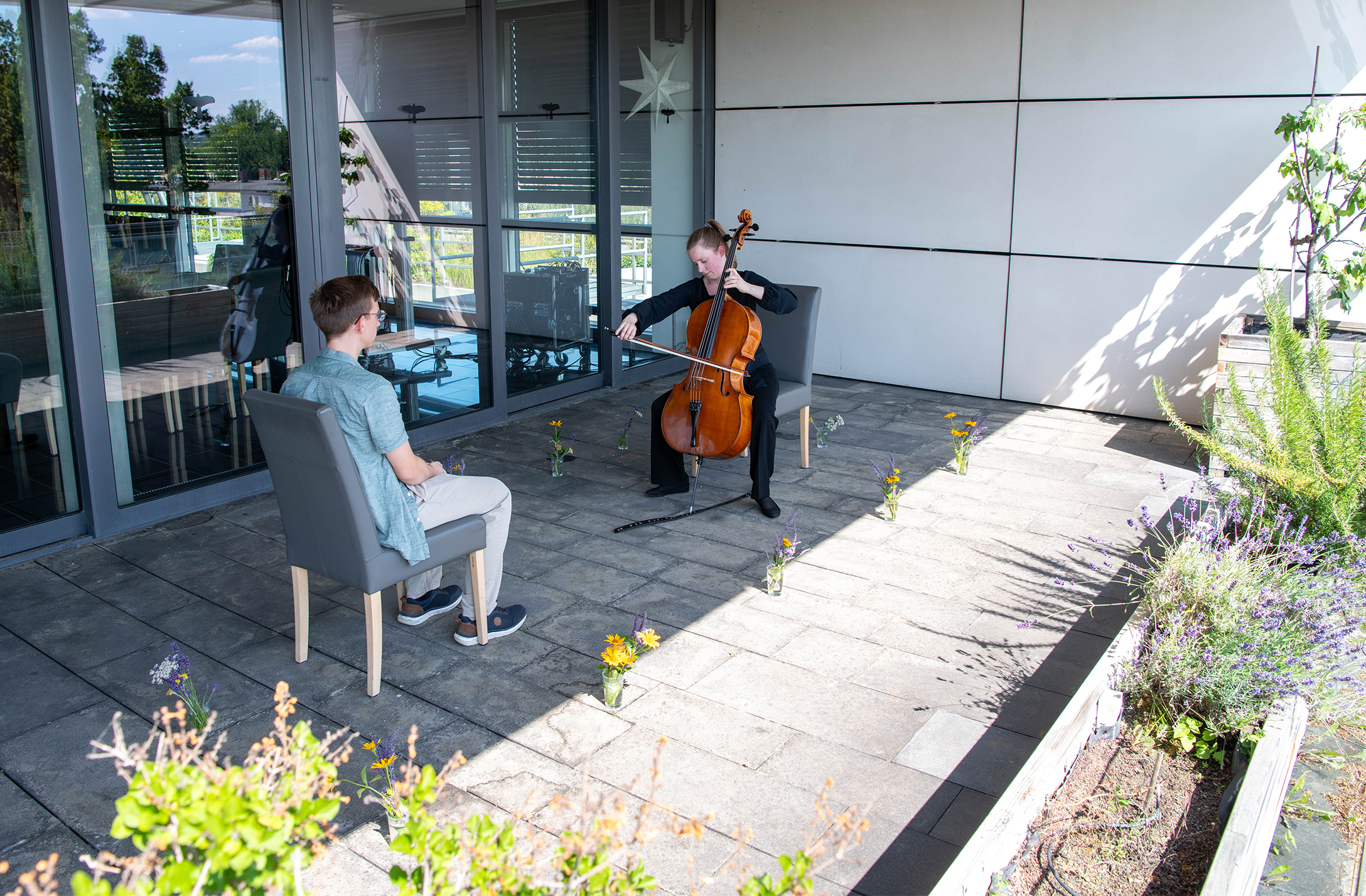 The RIFS Research Institute for Sustainability, which has its offices in a former bank building, let us "drive" into its underground car park, where violinist Thomas Kretschmer and cellist Jule Hinrichsen played. Judith Schäfer, one of the hosts at RIFS, expresses her enthusiasm and the emotional impact of the 1:1 CONCERTS as follows: